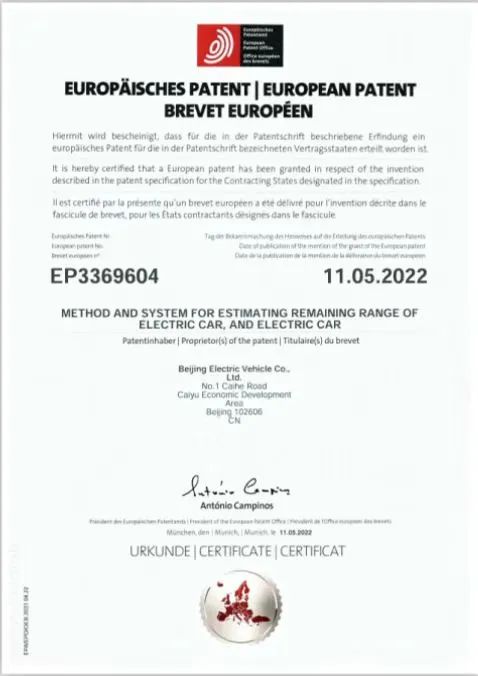 ?首個在電動汽車控制領域的出海專利。2022年,獲得國家知識產權局授權的《電動汽車的剩余續航里程估計方法、系統及電動汽車》發明專利,通過歐洲實質性審查并獲得歐洲專利局授權,其落地后的形態便是“動態續航”功能,在極狐汽車上早已落地。