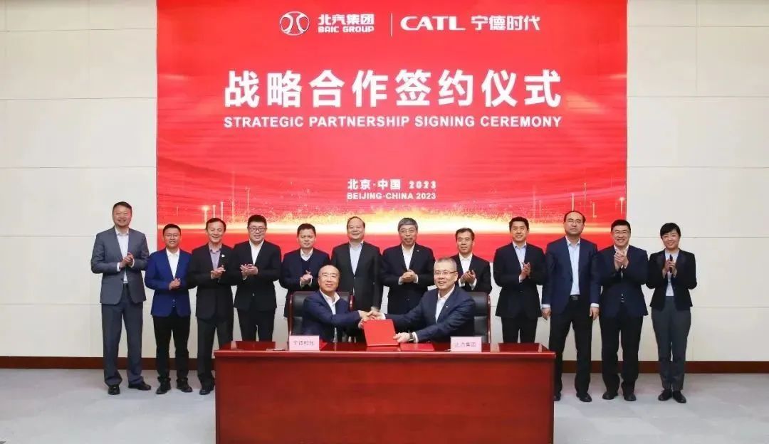 北汽集團(tuán)黨委書(shū)記、董事長(zhǎng)姜德義,總經(jīng)理張夕勇,副總經(jīng)理劉宇、胡漢軍,總經(jīng)理助理常瑞、陳巍,寧德時(shí)代董事長(zhǎng)曾毓群、市場(chǎng)體系聯(lián)席總裁韓偉、國(guó)內(nèi)乘用車事業(yè)部總裁朱威、CFO鄭舒出席簽約儀式。