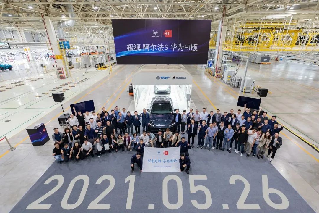 極狐阿爾法S 華為HI版生產(chǎn)線驗(yàn)證樣車下線