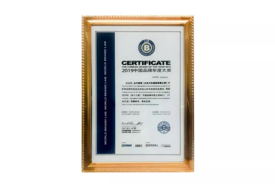 12月17日,業界權威機構世界品牌實驗室(World Brand Lab)發布2019年“中國品牌年度大獎”,35個活躍在2019年度中國經濟舞臺的領軍品牌入選。北汽集團憑借卓越的品牌影響力,獲得2019年“中國品牌年度大獎NO.1”獎項。