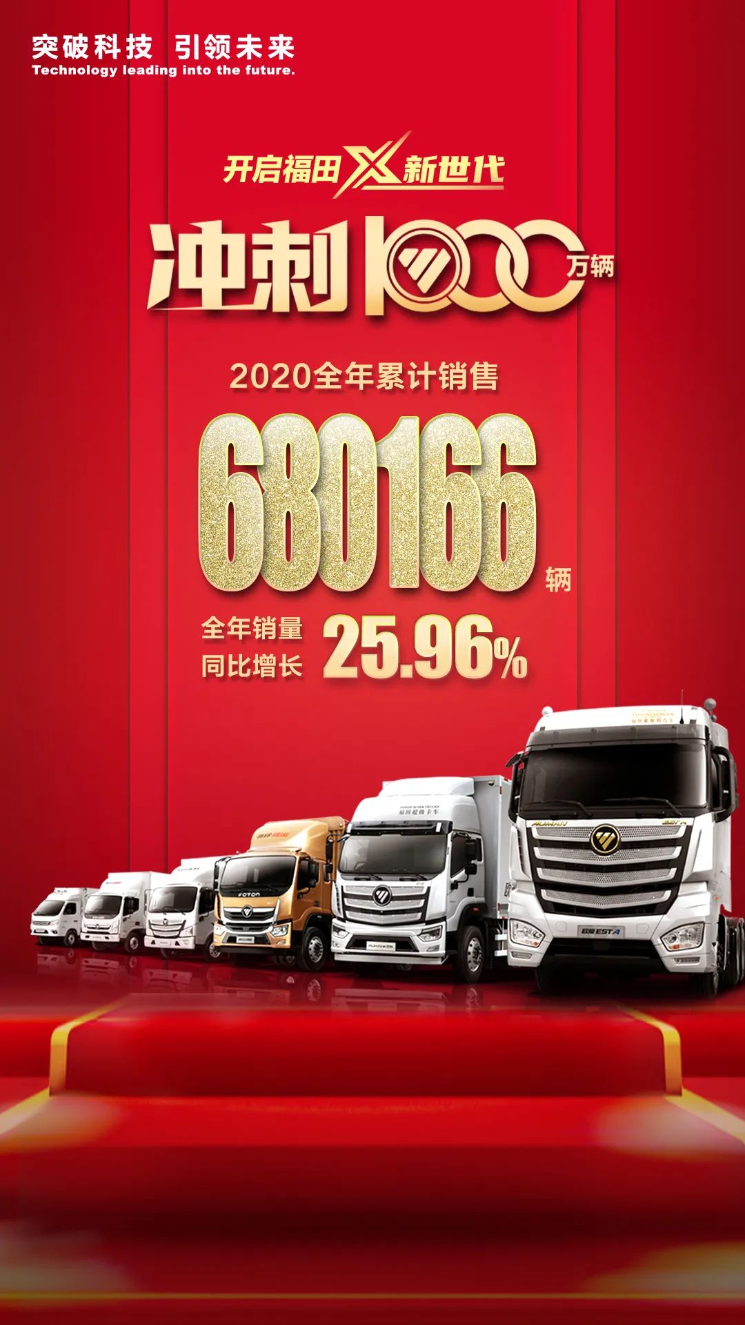 2020年,北汽福田在“三年行動計劃”戰略和“聚焦價值、精益運營”經營理念的引領下,取得了輝煌成績。2021年,北汽福田將成為中國首個銷量突破千萬輛的商用車企、全球突破千萬銷量用時最短的商用車企。在新形勢、新目標背景下,北汽福田將在“十四五”規劃的指引下,發揮創新協同等勢能,引領客戶發展,助推中國高效物流再上新臺階,為蓬勃發展的中國商用車市場再添新助力。