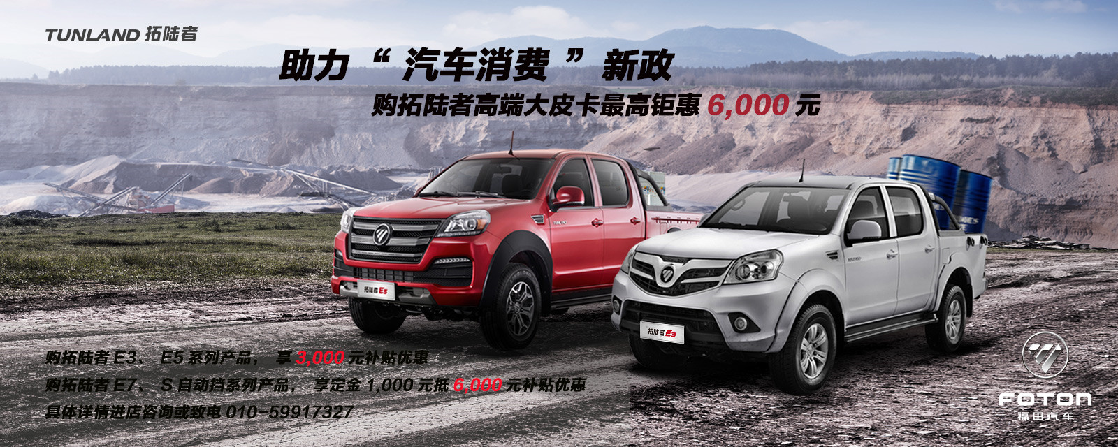 皮卡車型成為政策惠及的新板塊。作為北汽福田旗下皮卡車型品牌的福田拓陸者系列,是此次《方案》公布后最早依據方案提出實質性惠民政策的汽車品牌之一。春節期間,福田拓陸者針對農村用戶推出了響應新政的優惠政策:持有農業戶口購買E3、E5產品的用戶,在享受國家提供10%的補貼基礎上,再直接享受3000元的廠家補貼優惠,這意味著購買E5可最高直享2萬元的優惠補貼。