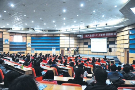 3月18日下午,北汽集團2013 春季校園招聘首場宣講會在北京理工大學舉行,拉開了北汽集團2013春季校園招聘序幕。首場宣講會現場火爆,原本能夠容納500人的招聘會現場,擠進了600多名應屆畢業生。隨后,陸續在上海交通大學、北京工業大學等高校開展的校園招聘依然是場場爆滿。
