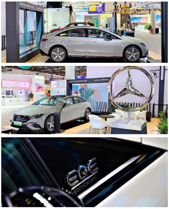 綠色低碳、可持續發展,“雙碳”元素在服貿會上隨處可見。設在國家會議中心的年度主題展區里,三叉星徽的標志熠熠生輝,不時有觀眾近距離參觀擺放在展臺上的EQE和EQB兩款純電動車。