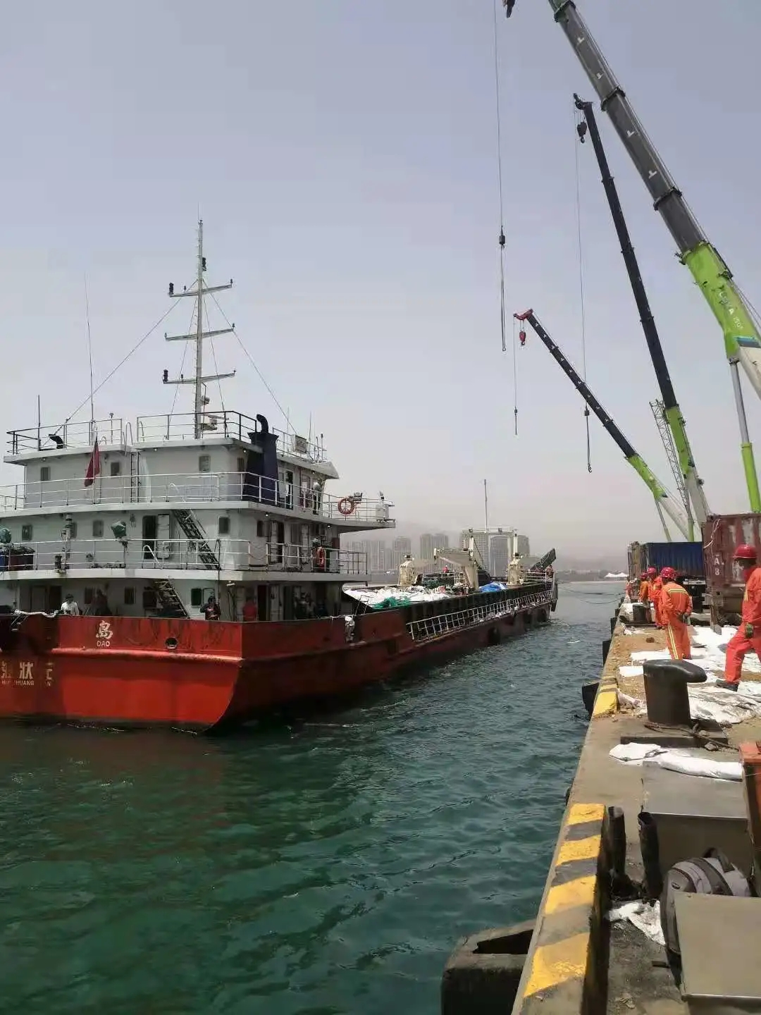 5 月 16 日,青島濱海起重機械有限公司接到緊急任務,要求全力參與船舶搶險救援任務。公司隨即派出8臺起重機立即奔赴大灣港碼頭開展搶險應急工作,其中包括 2 臺雷薩 55X5 輪式起重機、3 臺 25Q5 汽車起重機共 5 臺福田雷薩起重機參與救援。